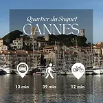 Chic Studio - Parking & Beaches 15 Min Walk Cannes, som ligger 5 minuter till fots från Saint George's church, erbjuder snabb tillgång till olika turistattraktioner i närheten. Gästerna kan använda Wi-Fi för antingen jobb eller fritid.